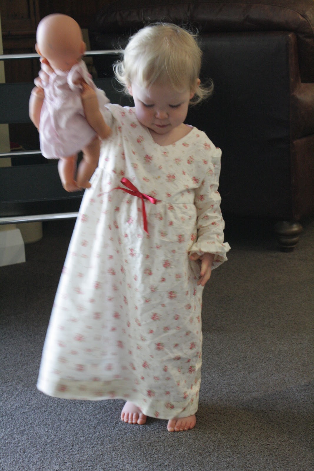 So here are the two nighties for Alice - the same pattern with different embelishments.